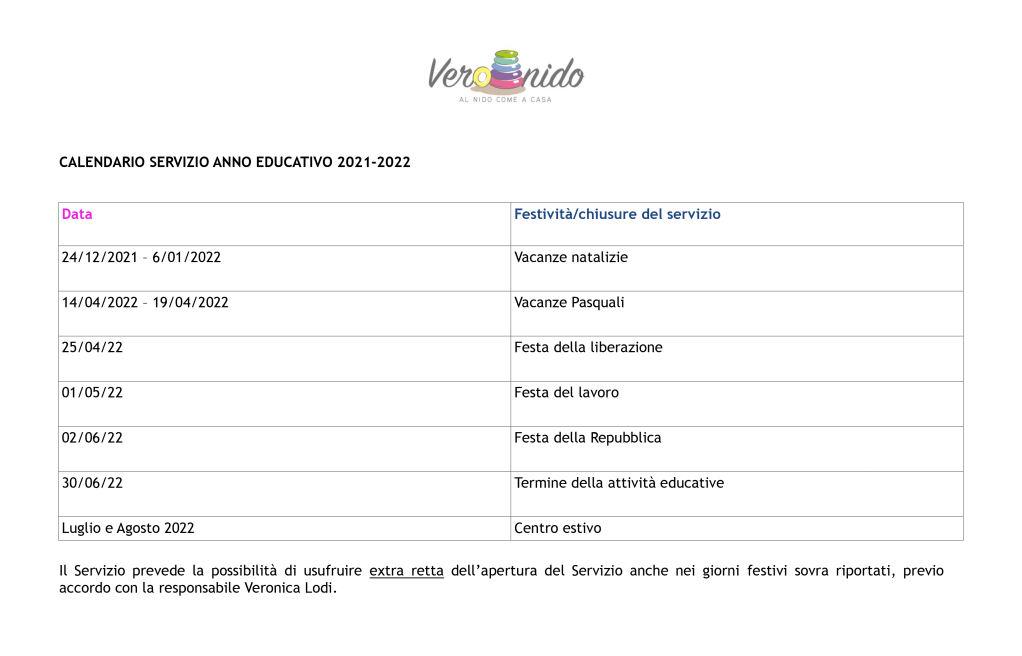 Caro genitore, in questa pagina puoi trovare tutta la modulistica relativa alle attività del VeroNido. Per ulteriori informazioni non esitare a contattarci.